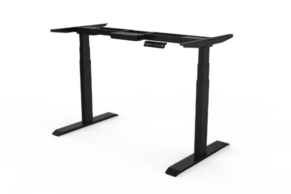 The 2-motor standing desk frame features electric control systems that allow users to adjust desk heights and to maintain ergonomic postures both while standing and sitting in seconds, so that improves blood circulation, reduces backache/pain/stress/tension, and feel better as work/study.